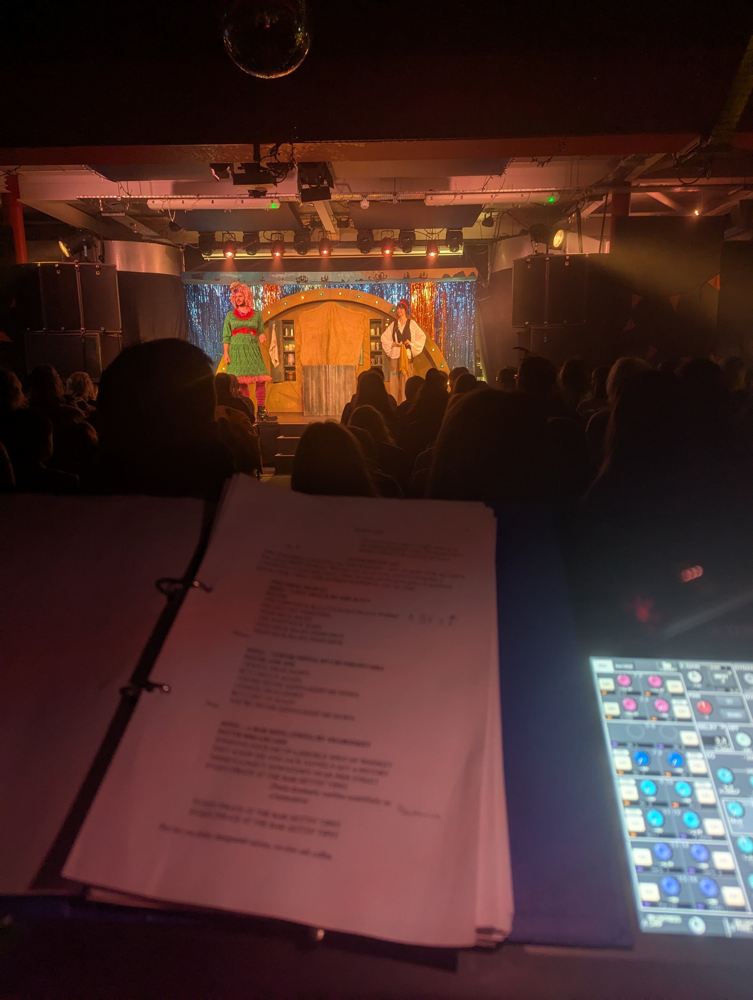 I have worked as the sound engineer for Middle Child’s annual panto since 2021, which was my first professional role in theatre sound engineering. Since then, I’ve built a strong and ongoing working relationship with the company, returning each year to support the production. My role includes setting up and sound-checking the cast microphones and the band, operating the show during performances, and contributing to elements of the sound design.