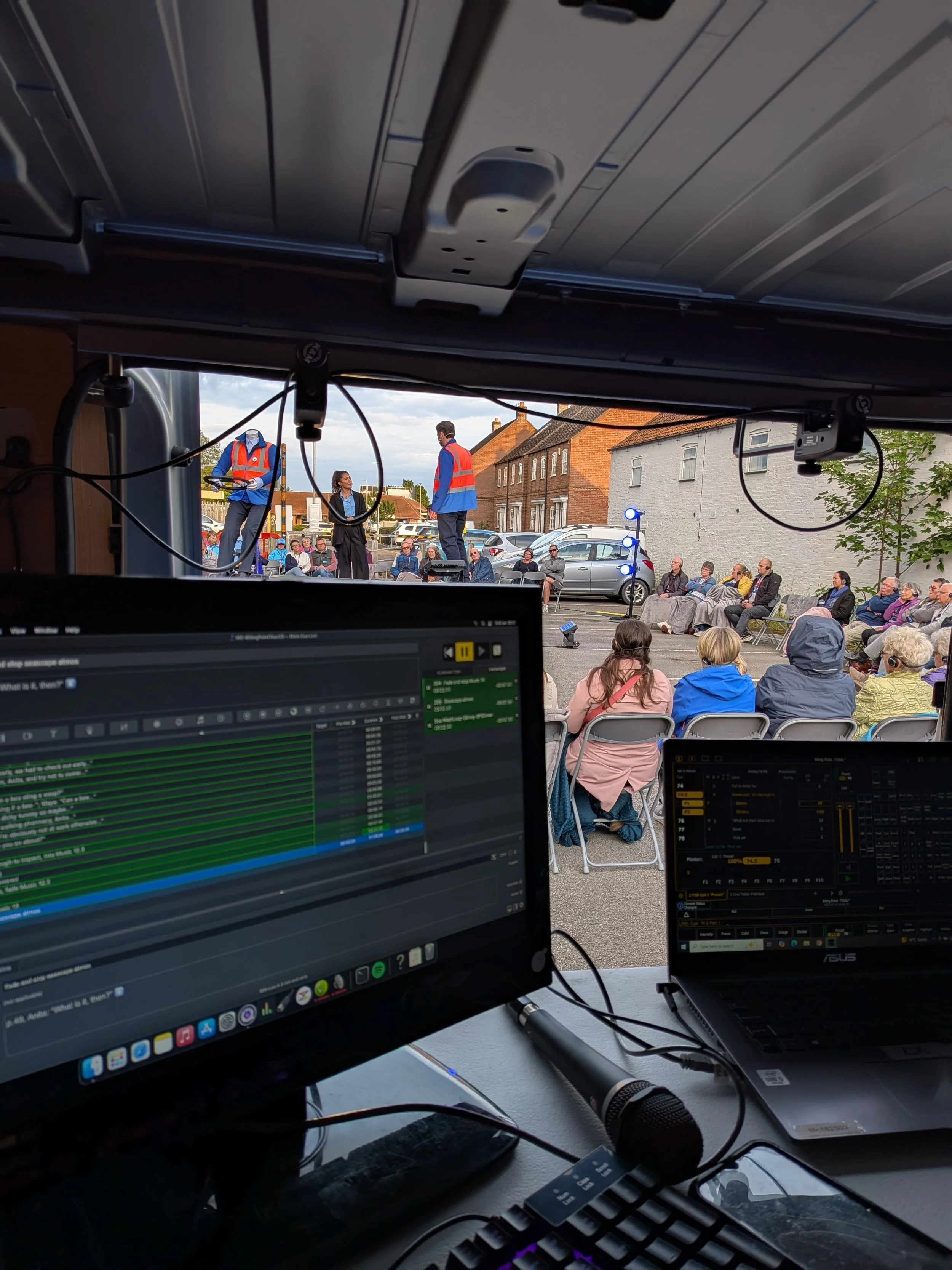 I was the sound engineer for Middle Child’s 2025 production Biting Point, a unique outdoor theatre performance experienced by the audience through headphones. My role involved mixing pre-recorded dialogue and sound design alongside live microphones worn by the cast. The role included setting up and packing down the rig each day and also maintenance and distribution of the audiences wireless receiver packs.